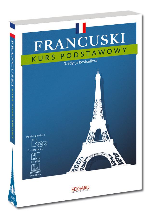 Zacznij mówić i czytać po francusku! W najnowszym wydaniu unikalnego kursu dla początkujących znajdziesz wszystko, czego potrzebujesz do samodzielnej i skutecznej nauki:– obszerny podręcznik w nowoczesnej szacie graficznej,– nagrania native speakerów z tłumaczeniami,– wciągające ćwiczenia w programie komputerowym.Książka (208 stron):– 39 ciekawych lekcji – poznaj słownictwo i podstawy gramatyki,– 1500 słów, wyrażeń i zdań przydatnych na co dzień – zrób zakupy, kup bilet, zapytaj o drogę,– teksty, dialogi, ciekawostki oraz słowniczek francusko-polski,– ćwiczenia utrwalające z kluczem odpowiedzi i rozdziały podsumowujące – ucz się aktywnie i trwale zapamiętuj.Wysokiej jakości nagrania:– ponad 125 minut nagrań native speakerów – poznaj francuską wymowę,– nagrania z tłumaczeniami – powtarzaj za lektorem,– słuchaj i ucz się w drodze do pracy, na siłowni, w samochodzie.Program komputerowy:– ćwiczenia interaktywne – utrwalaj i powtarzaj materiał,– gry językowe – nawet nie zauważysz, jak zapamiętasz słówka,– testy podsumowujące – dowiedz się, ile już umiesz,– wygodne generowanie playlist nagrań mp3 – twórz własne playlisty i zapamiętuj szybciej.