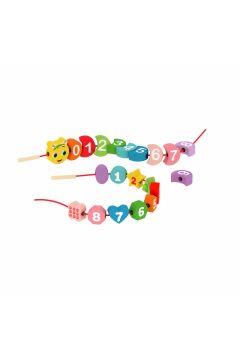 Zadaniem dziecka jest nawlekanie ich na dołączony do zestawu sznureczek. Dziecko ćwiczy w ten sposób koncentrację, umiejętności manualne i koordynację ręka - oko. Zasada bawienia przypomina szycie igłą. Igłą w tym wypadku jest drewniany patyczek, którym nawleka się kolorowe figurki.