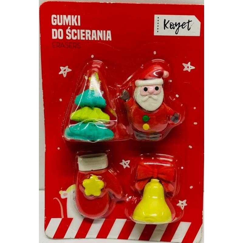 - 4 sztuki wielokolorowych gumek w świątecznych kształtach,