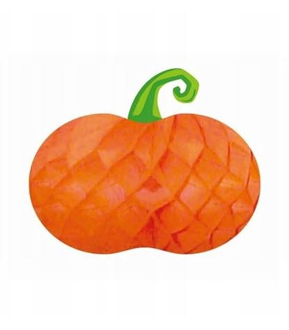 ROZETA ROZKŁADANA DYNIA Wymiary: 30 x 30 cm Materiał: papier Kolor: pomarańczowy W opakowaniu: 1 szt.