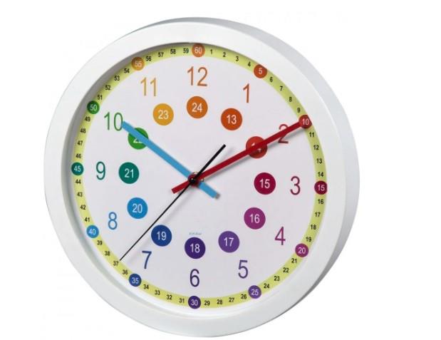 Zegar ścienny do nauki godzin Easy Learning, 30 cmZegar kwarcowy z analogowym wskazaniem czasu w radosnym dziecięcym wzornictwie. cichy mechanizm zegarowy z pełzającym sekundnikiem; nie słychać tykania, lecz lekko słychać szumienie mechanizmu zegara pomaga dzieciom w nauce odczytywania czasu duża tarcza z arabskimi cyframi wskazówka godzinowa, minutowa i sekundowa doskonały do pokoju dzieckaProdukt może mieć uszkodzone opakowanie lub naruszoną plombę fabryczną opakowania.