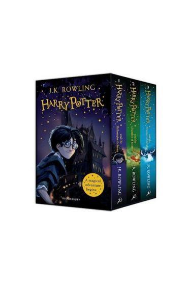 K. Rowling s irresistible storytelling pulls readers into an unforgettable, magical adventure. Harry Potter is a milestone in every child s reading journey and this gorgeous, collectable three-book set is the perfect introduction for new readers and young Muggles everywhere. This beautifully produced box set contains Harry Potter and the Philosopher s Stone, Harry Potter and the Chamber of Secrets and Harry Potter and the Prisoner of Azkaban, with enchanting cover art by Jonny Duddle ? plus three gorgeous, colourful bookmarks with memorable quotes from favourite Harry Potter characters!