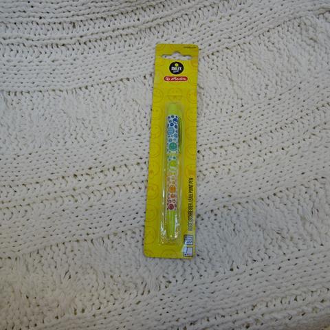 profilowany kształt, plastikowa oprawa, niebieski kolor tuszu, opakowanie blistrowe. Kolekcja SmileyWorld Rainbow.