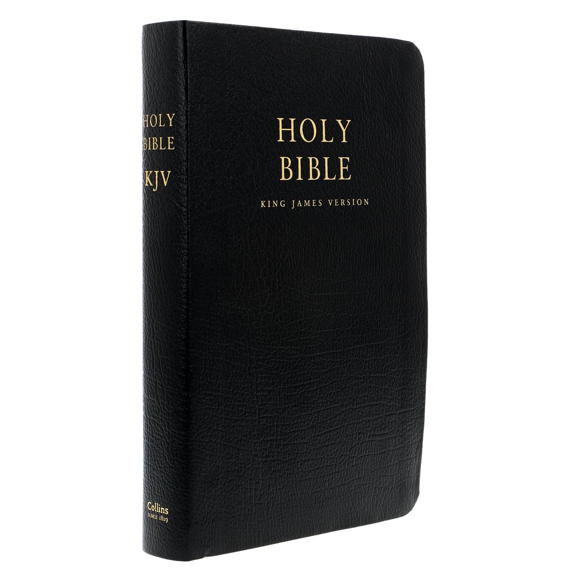 The full text of the Popular size King James or Authorized Version Bible, in a straightfoward black imitation leather hardback binding.