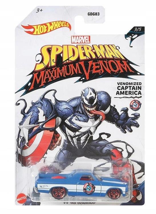 Klasyczny El Camino w wersji inspirowanej światem Marvela. Jego kolorystyka utrzymana jest w czterech barwach – białej, czarnej, czerwonej i dominującej niebieskiej. Z pewnością wpadnie w oko każdemu miłośnikowi motoryzacji i kolekcjonerowi wyścigówek Hot Wheels.