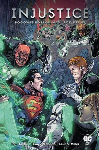 Postanowił, że jedyną drogą do zaprowadzenia pokoju na Ziemi będzie zakończenie wszystkich konfliktów. Zaczął od przebicia pięścią piersi Jokera. A później poszerzał skalę działań. Batman pozostaje wierny przekonaniu, że każdy zasługuje na uczciwy proces, niezależnie od rozmiaru popełnionych zbrodni. Obecnie prowadzi ruch oporu, który przeciwstawia się autorytarnym rządom byłego przyjaciela. Członkowie Korpusu Zielonych Latarni zauważyli drastyczne zmiany, jakie zaszły na Ziemi, i wyruszają na nią z zamiarem interwencji. Superman ma jednak ważne pytanie, które chce zadać ich przywódcom: dlaczego pozwolili na zagładę Kryptona? Komiks równie wypełniony akcją jak fenomenalna gra, która była inspiracją do jego powstania. Injustice: Bogowie Pośród Nas ? Rok Drugi opowiada historię świata, w którym istoty o niemal boskich mocach próbują zaprowadzić porządek. Scenarzysta Tom Taylor (DCeased, Suicide Squad: Zła Krew) oraz rysownicy Bruno Redondo (Batman: Arkham Unhinged) i Mike S. Miller (A Game of Thrones) oraz cała rzesza znakomitych artystów zapraszają do lektury drugiego tomu bestellerowej serii. Album zawiera materiały opublikowane pierwotnie w amerykańskich zeszytach w formie cyfrowej jako Injustice: Gods Among Us Year Two #1?24, a później drukowanej jako Injustice: Gods Among Us Year Two #1?12 i Injustice: Gods Among Us Year Two Annual #1.