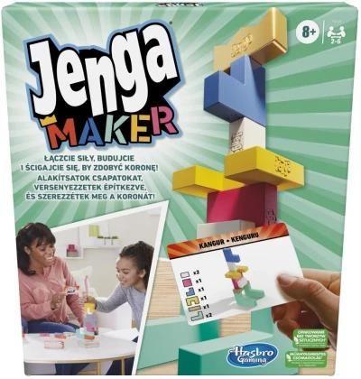 Zbierz drużyny, aby zagrać w tę pełną napięcia grę opartą na budowaniu - Jenga Maker! Gracze dobierają się w zespoły, z których każdy ma wyznaczonego instruktora i konstruktora. Instruktor opisuje układ na dobranej karcie, a konstruktor musi prawidłowo ustawić klocki, aby go odwzorować. Opisując układ klocków, nie można pokazywać, gestykulować, ani podglądać! Zespoły budują jednocześnie i starają się ukończyć swoją konstrukcję przed innymi graczami. Pierwsza drużyna, która zakończy budowę swojego dzieła ? bez przewrócenia wieży ? wygrywa rundę! Całą rozgrywkę wygrywa drużyna, która wygra 3 z 5 rund! Gra zawiera 28 kolorowych, najwyższej jakości drewnianych klocków Jenga. Każdy klocek oznaczony jest oficjalnym logiem Jenga. Karty w zestawie przedstawiają aż 200 obiektów i rzeczy do zbudowania.