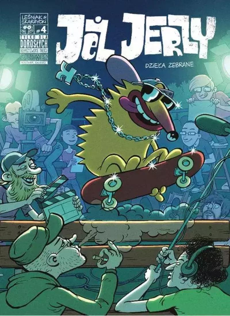 Postać, stworzona przez Tomka Leśniaka i Rafała Skarżyckiego, zawsze była głosem młodego pokolenia, a autorzy znani z bezlitosnego wyśmiewania naszych narodowych wad i słabości. Przygody Jeża Jerzego to historie o piętnowaniu głupoty, nietolerancji i ksenofobii. Bohater konfrontował się m.in. ze skinami, niekompetentnymi dziennikarzami, pazernymi politykami, mafią, a nawet samym Szatanem. Tom czwarty zbiorczego wydania Jeża Jerzego to bardzo rozbudowana wersja albumu Jeż Jerzy na urwanym filmie, wydanego z okazji premiery pełnometrażowej animowanej adaptacji komiksu w 2011 roku. Zaglądamy za kulisy jej powstania, do szuflad i na dyski twarde twórców filmu. Szkice, koncept arty, storyboardy, zdjęcia ze studia, a także wspomnienia Wojtka Wawszczyka, jednego z reżyserów, składają się na ten fascynujący tom. Są też komiksy oczywiście! Tym jednak razem nie będą to tylko przygody Jerzego stworzone przez duet Leśniak/Skarżycki. Rysownikami i scenarzystami są tu również animatorzy, rysownicy i reżyserzy filmu Jeż Jerzy , m.in. Olaf Ciszak, Kamil Kochański, Marcin Ponomarew, czy Janusz Ordon. Proces produkcji Jeża Jerzego był wyjątkowy. O nim właśnie traktuje ta książka. To poszerzona wersja artbooka wydanego 11 lat temu. Wzbogacona o dodatkowe wspomnienia, nieznane materiały, anegdoty i dystans 11 lat. Z tej perspektywy jeszcze bardziej widzę jak niepowtarzalny był to okres. Dziś taki film po prostu by już nie powstał fragment wstępu Wojtka Wawszczyka.