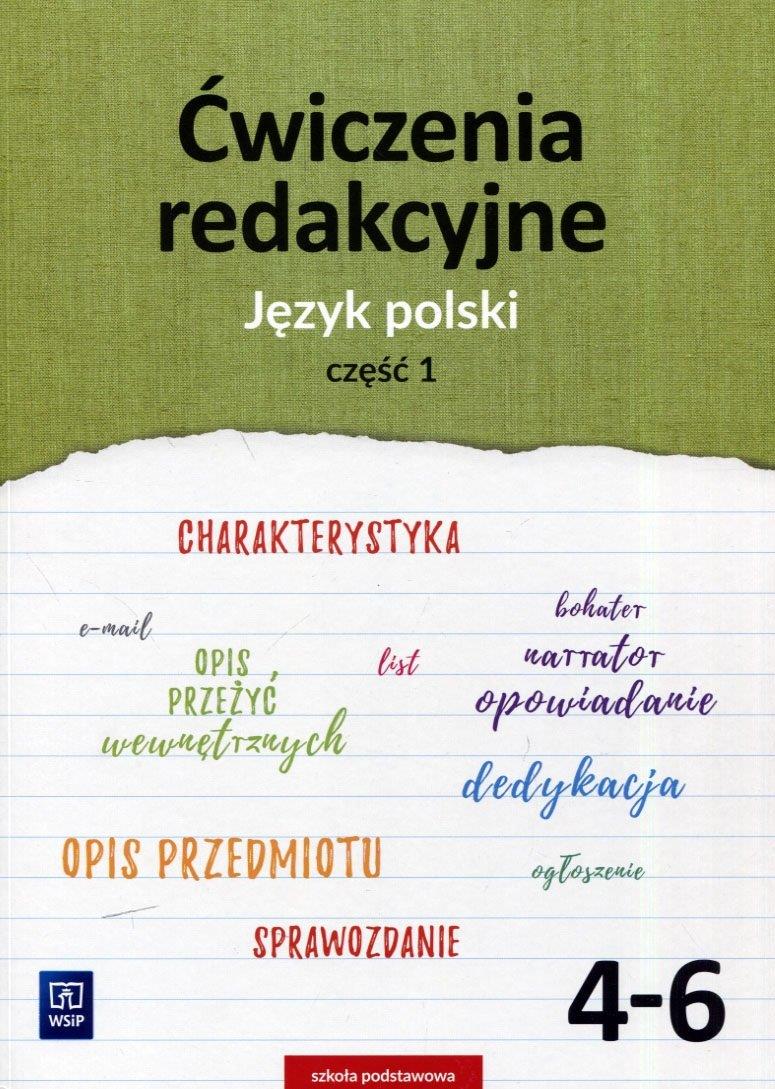 Ćwiczenia redakcyjne dla uczniów klas 4-6 zawierają szesnaście rozdziałów poświęconych formom wypowiedzi przewidzianym w podstawie programowej na ten etap kształcenia. Ćwiczenia są doskonałym uzupełnieniem dwóch cykli WSiP do klas 4-6: Słowa z uśmiechem i Jutro pójdę w świat. Mogą także służyć uczniom starszych klas oraz gimnazjalistom do doskonalenia umiejętności redagowania tekstów. Publikacja oprócz ćwiczeń redakcyjnych obejmuje najważniejsze informacje teoretyczne i praktyczne wskazówki niezbędne do prawidłowego sformułowania: planu; opisu przedmiotu, obrazu, krajobrazu i przeżyć wewnętrznych; charakterystyki postaci rzeczywistej i literackiej; opowiadania; listu tradycyjnego i e-maila; sprawozdania; zaproszenia; ogłoszenia; dedykacji; notatki; życzeń i podziękowań; własnych opinii oraz scenariusza filmowego.Ćwiczenia mają uniwersalną formę, która umożliwia zarówno samodzielną pracę uczniów, jak i wykorzystanie publikacji na lekcjach.