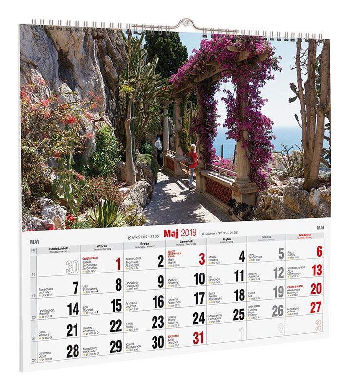 Duży, solidny kalendarz ścienny, drukowany na papierze kredowym.