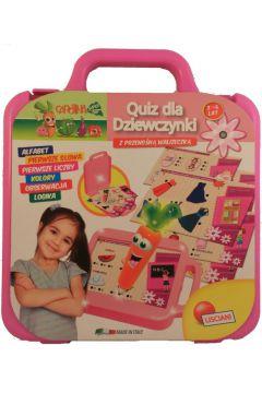 Carotina Qiuz dla dziewczynek - to liczne zagadnienia dydaktyczne. Ta bogata walizka w kolorze różowym przyda się każdej dziewczynce. Zestaw zawiera karty do stopniowej nauki różnych zagadnień. W nauce dziecku pomoże mówiąca i świecąca marchewka, która pochwali je za dobrą odpowiedź. Walizka stanowi wygodne przenośne biurko.