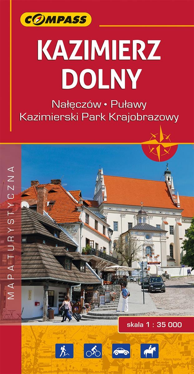 Turystyczna mapa Kazimierza Dolnego i okolic w skali 1:35 000. Znaleźć na niej można wszystkie ważne dla turysty informacje z tych pięknych terenów dotyczące nie tylko cennych zabytków, ale i tras pieszych, rowerowych, rezerwatów przyrodniczych i parków krajobrazowych. Mapa zawiera aktualną infrastrukturę turystyczną.