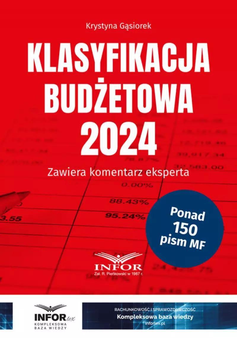 Ujednolicona wersja klasyfikacji budżetowej wraz z komentarzem eksperta i ponad 150 wyjaśnieniami Ministerstwa Finansów ułatwi księgowym właściwe stosowanie podziałek klasyfikacji budżetowej. AUTOR:Krystyna Gąsiorek ? ekonomistka, od ponad 20 lat prowadzi szkolenia z tematyki finansów publicznych, w tym sprawozdawczości i klasyfikacji budżetowej. Ma szeroką wiedzę i doświadczenie zdobyte w trakcie długoletniej praktyki zawodowej, m.in. jako główna księgowa w państwowej jednostce budżetowej oraz jako starszy specjalista w Wydziale Informacji, Analiz i Szkoleń w RIO. Autorka licznych publikacji książkowych i prasowych w tym zakresie.