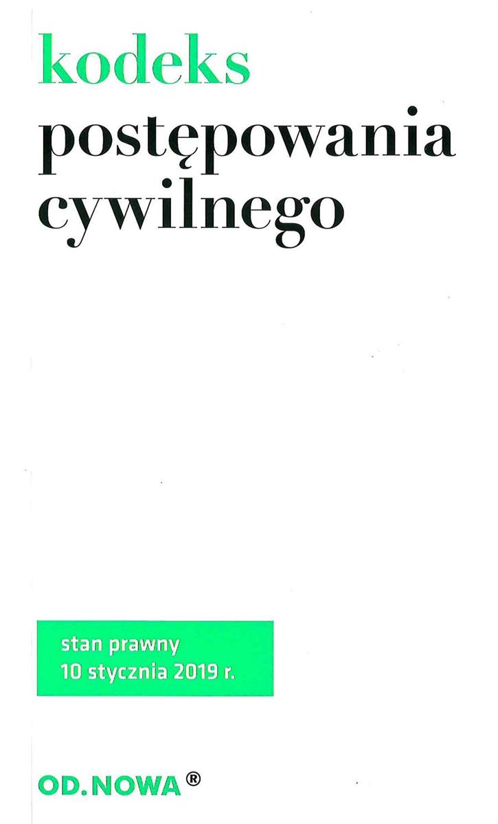 Kodeks postępowania cywilnego oraz wybrane przepisy zmieniające KPC (wyciągi). Poprzez system przypisów publikacja umożliwia studentom i praktykom łatwe śledzenie zmian prawnych. Zaletą książki jest jej praktyczny, poręczny format, przejrzysty układ graficzny i niska cena. Łatwą orientację w materiale umożliwia obszerny skorowidz. Stan prawny: styczeń 2019 r. Przepisy wchodzące w życie później niż podany stan prawny aktu prawnego ale już ogłoszone w Dzienniku Ustaw podajemy w ramkach z zachowaniem przepisu w dotychczas obowiązującym brzmieniu.Publikacja wskaże Ci m.in.:• właściwość sądu, skład sądu, strony postępowania,• koszty procesu,• środki odwoławcze,• postępowania odrębne,• postępowanie nieprocesowe,• postępowanie zabezpieczające,• postępowanie egzekucyjne,• przepisy z zakresu międzynarodowego postępowania cywilnego,• sąd polubowny (arbitrażowy).Szczególnie pomocna dla:• studentów i wykładowców,• osób przygotowujących się do egzaminów,• aplikantów,• osób ceniących sobie poręczny format, niewielkie gabaryty książki oraz przystępną cenę.