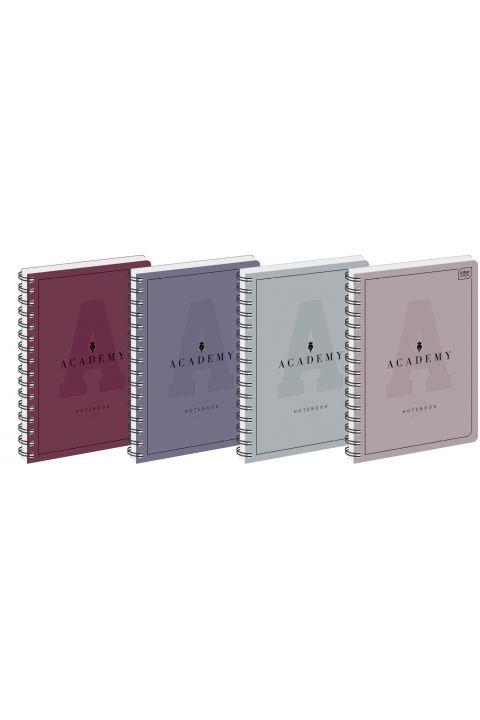 Format: B5. Liczba kartek: 100. Zadruk w kratkę. Zaokrąglone rogi. W środku grube i supergładkie kartki ze specjalnego papieru 90 g, dzięki którym długopis nie przebije na drugą stronę. Okładka pokryta miłą w dotyku folią soft touch oraz lakierem wybiórczym. Sygnowane kartki z mikroperforacją. Podwójna spirala zamykana. Academy to kolekcja papiernicza premium stworzona z myślą o uczniach i studentach, ceniących sobie jakość produktu i komfort pisania. Dostępna w dwóch stylowych odsłonach kolorystycznych: pastelowej i stonowanej.