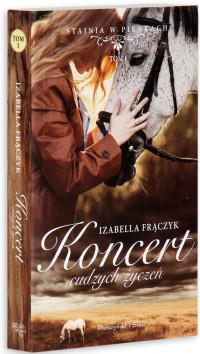 Czasem trzeba porzucić wszystko, żeby odnaleźć drogę do własnego świataSprawdzone przyjaciółki, dobrze płatna praca i kochający facet – czy może być coś ważniejszego?Magda była zadowolona ze swego życia… do czasu gdy w drzwiach jej mieszkania stanęła teściowa z walizkami. A to dopiero początek nieoczekiwanych zmian w jej życiu…W spadku po babci otrzymuje stadninę koni w Pieńkach, która okazuje się podupadającą i zadłużoną ruiną. Ale może to właśnie ten moment, gdy los daje szansę, by zacząć wszystko od nowa?Izabella Frączyk w niezwykłej historii o uśmiechach losu, przyjaźni i zaufaniu do ludzi.„Są sytuacje, które wydają się beznadziejne. A cały szkopuł tkwi w tym, żeby dostrzec to, co na pierwszy rzut oka niewidoczne. Magda – bohaterka powieści – właśnie to czyni. Zakochuje się w fatalnym pomyśle. I gwarantuję, że Wy zakochacie się razem z nią”.– Magdalena Kordel„Czasami chciałabym się znaleźć w takich Pieńkach i w takiej stajni. Rzucić wszystko i zająć się czymś zupełnie innym, jak bohaterka tej książki. Świetnie i z ogromnym poczuciem humoru – jak to zwykle u Izy Frączyk – napisana powieść. Polecam gorąco”.– Lucyna OlejniczakIzabella Frączyk (ur. 1970) – absolwentka Akademii Ekonomicznej w Krakowie oraz Wyższej Szkoły Handlu i Finansów Międzynarodowych w Warszawie. Pisaniem zajęła się w 2009 roku. Do tej pory wydała siedem książek: Pokręcone losy Klary (2010), Kobiety z odzysku (2011), Dziś jak kiedyś (2013), Koniec świata (2014), Jak u siebie (2014), Siostra mojej siostry (2015) i Do trzech razy sztuka (2016) – wszystkie ciepło przyjęte przez czytelniczki. Koncert cudzych życzeń to pierwszy tom nowego cyklu „Stajnia w Pieńkach”.