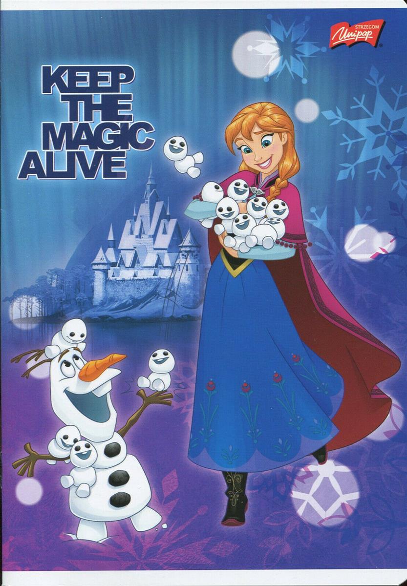 WŁAŚCIWOŚCI :Licencja - FROZENZeszyt : 16 kartekFormat : A5Rodzaj : LINIA KOLOROWAMargines : brakOprawka : miękka laminowanaEgzemplarze powystawowe - okładki mogą zawierać zbite rogi, zagięcia, przybrudzenia, rysy.