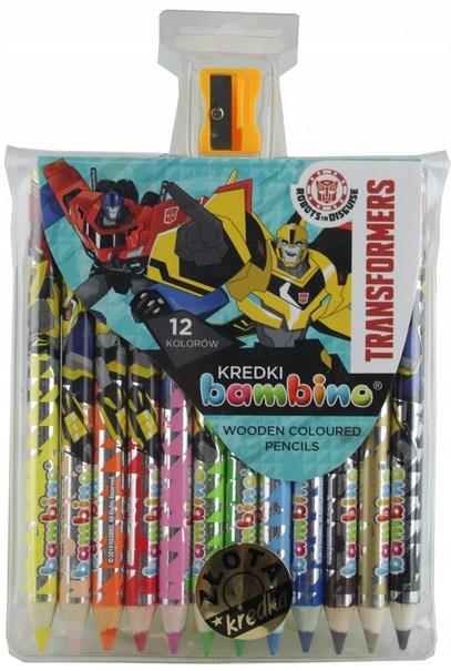 Kredki bambino z motywem Transformers. 12 kolorów + temperówka