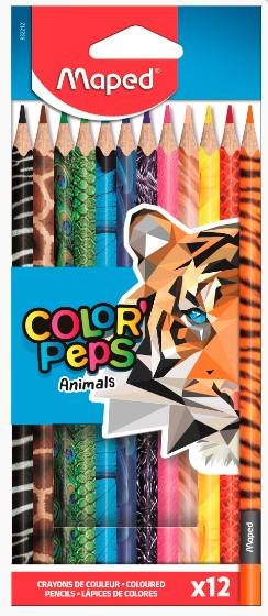 Kredki olówkowe Color& 39;Peps Animals. Niespotykane, wyjatkowe grafiki na obudowie kredek przypominaja rózne gatunki zwierzat i ptaków. Wykonane z drewna lipowego, trójkatny przekrój, intensywne kolory. Standardowa srednica grafitu 2,9 mm. Pakowane w kartonowe etui. Ozdobne opakowanie zbiorcze doskonale do prezentowania kredek na pólce. Etui 12 kolorów.