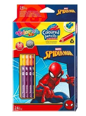 Kredki ołówkowe, trójkątne z temperówką, Colorino Kids, Spiderman, 24 kolory kredki ołówkowe, dwukolorowe posiadają niezwykle miękki rysik, dzięki któremu rysowanie to prawdziwa przyjemność dodatkową ich zaletą jest trójkątny, ergonomiczny kształt., który idealnie wpasowuje się w dłoń i zapewnia komfort rysowania liczba kolorów: 24