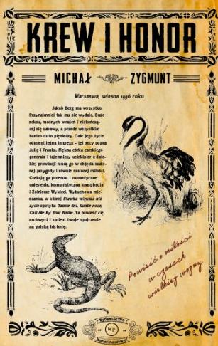 Warszawa, wiosna 1936 roku. Jakub Berg ma wszystko. Przynajmniej tak mu się wydaje. Dużo seksu, mocnych wrażeń i niekończącej się zabawy, a przede wszystkim bardzo dużo pieniędzy. Całe jego życie odmieni jedna impreza ? tej nocy pozna Julię i Franka. Piękna córka carskiego generała i tajemniczy uciekinier z dalekiej prowincji rzucą go w objęcia szalonej przygody i równie szalonej miłości. Czekają go przemoc i romantyczne uniesienia, komunistyczna konspiracja i Żołnierze Wyklęci. Wybuchowa mieszanka, w której ?Stawka większa niż życie spotyka ?Tamte dni, tamte noce , ?Call Me By Your Name . Ta powieść cię zachwyci i zmieni twoje spojrzenie na polską historię. Egzemplarze powystawowe - mogą zawierać zbite rogi, rozdarcia, przybrudzenia, rysy.