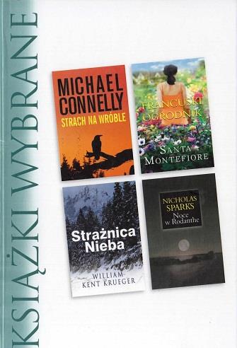 Książki Wybrane to niezwykle oryginalny pomysł wydawniczy. Każdy tom zawiera cztery specjalnie zredagowane najnowsze światowe przeboje literackie. Sławni autorzy, najlepsze powieści, solidna oprawa i gustowna szata graficzna ? to wszystko znajdziesz w każdym tomie Książek Wybranych dostępnych tylko w Reader s Digest! Strach na wróble - Michael Connelly Francuski ogrodnik - Santa Montefiore Strażnica Nieba - William Kent Krueger Noce w Rodanthe - Nicholas Sparks