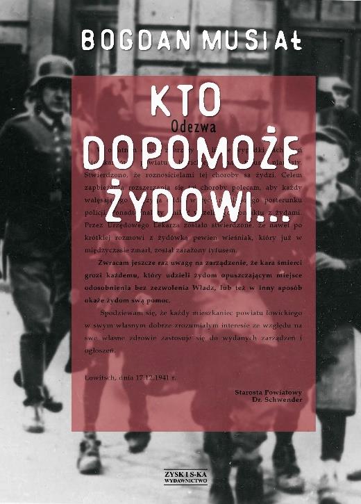 Kto dopomoże Żydowi... ? książka o wielowymiarowym tytule. Zdanie wzięte z okupacyjnych ustaw niemieckich można dopełniać na wiele sposobów. Ten, kto pomagał podlegał karze śmierci. Po wojnie dostawał Medal Sprawiedliwego Pośród Narodów Świata, ale bywał też nazywany antysemitą. Dyskusja dotycząca postaw Polaków wobec Holcaustu roi się od skrajnie sprzecznych opinii i sądów. Cechują ją skrajne emocje, płynące z różnych doświadczeń, które są absolutyzowane. Bogdan Musiał ? historyk ? w swej książce nie kieruje się jednak emocjami, ale daje rzeczową wykładnię prawa niemieckiego, które w żadnym innym okupowanym kraju nie było tak surowe i bezwzględne wobec tych, którzy w jakikolwiek sposób udzielili pomocy Żydom. Stopień gotowości w polskim społeczeństwie do pomocy prześladowanym Żydom był na tyle duży, że niemieccy okupanci czuli się zmuszeni stworzyć specjalne prawodawstwo penalizujące takie postawy oraz stosować drakońskie kary i represje. Ich celem było stworzenie atmosfery strachu, aby w ten sposób wyeliminować lub przynajmniej ograniczyć pomoc skazanym na śmierć Żydom. Mimo to znalazło się tysiące ?Sprawiedliwych wśród narodów świata , którzy przekraczali granice lęku. Niejednokrotnie zapłacili za to najwyższą cenę. O nich także opowiada ta książka. Ich ofiara często okazuje się jednak argumentem niewystarczającym. Co parę lat Polacy stawiani są pod pręgieżem, oskarżeni o to, że antysemityzm wyssali z mlekiem matki i współpracowali nazistami w eksterminacji Żydów. Ta dyskusja nigdy nie ustanie. Tym niemniej trzeba bezustannie zbierać świadectwa...