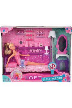 Lalka Steffi w zestawie - w zestawie ponad 30 akcesoriów, łóżko,toaletka, lampa, 3 l+