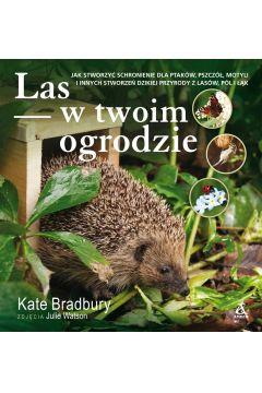 Las w twoim ogrodzie to napisany z pasją, żywy, barwny i przyjazny praktyczny przewodnik, jak zmienić twój ogród czy działkę w dom dla ptaków, pszczół, motyli i innych stworzeń dzikiej przyrody z lasów, pól i łąk. Pasuje do każdego, nawet najmniejszego ogródka! Kate Bradbury podpowiada, jak zapewnić schronienie, żywność i wodę dziko żyjącym stworzeniom, które rośliny dają najwięcej nektaru i pyłku, jakie są organiczne metody kontroli szkodników. Pokazuje, jak zidentyfikować zwierzęta, które zauważysz w swoim ogrodzie, kogo w nim wypatrywać i jak dokarmiać ptaki, ssaki, pszczoły, motyle, ćmy i mieszkańców oczka wodnego. Pokazuje również 10 projektów urządzeń, które zachęcą zwierzęta lasów, pól i łąk do osiedlenia się w twoim ogrodzie, takich jak gniazdo dla trzmieli, zielony dach, budka dla ptaków, domek dla jeży. Wszystkie możesz wykonać według prostych wskazówek krok po kroku - w ciągu weekendu.