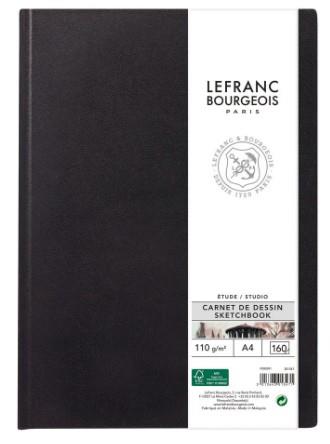 SZKICOWNIK LEFRANC BOURGEOIS SZYTY 110 g FORMAT A4Szkicowniki Lefranc Bourgeois Studio Sketchbook 110g są świetnie dla osób, które tworzą duże ilości szkiców, mają mnustwo pomysłów lub uwielbiają i kochają rysować! Szkicownik prezentuje się dobrze z czarną, przypominającą skórę okładką, która daje solidną podstawę do rysowania w plenerze oraz szybkich szkiców na ulicy. Lekko ziarnisty, naturalnie biały papier o gramaturze 110g, zapewnia komfortową pracę ze szkicem lub rysunkiem.