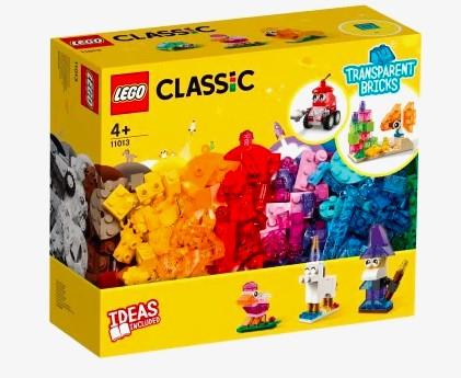 Zestaw konstrukcyjny LEGO? Classic 11013 Kreatywne przezroczyste klocki zawiera komplet olśniewających przezroczystych elementów LEGO w różnych kolorach, kształtach i rozmiarach, a także ekscytujący wybór klasycznych klocków, elementów, oczu i kółek LEGO. Jest tam wszystko, czego dzieci potrzebują, żeby twórcza zabawa trwała wiele godzin.