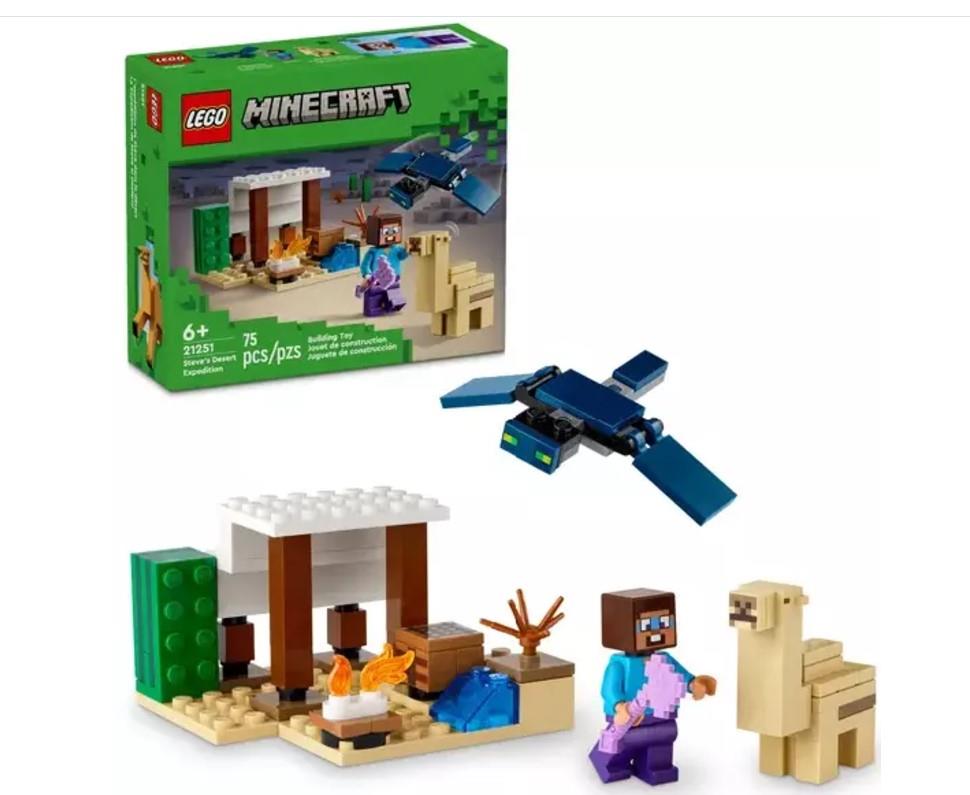 Pustynny zestaw LEGO? Minecraft? ? pierwszy zestaw LEGO Minecraft osadzony w pustynnym biomie rzuca wyzwanie chłopcom i dziewczętom w wieku od sześciu lat, aby zbudowali dom z gry, a następnie bronili go przed latającym fantomem.? Zabawka z figurkami Minecraft? ? zawiera minifigurkę popularnego bohatera z Minecrafta, Steve?a, figurkę małego wielbłąda (pojawiającą się po raz pierwszy!) i figurkę latającego fantoma z ruchomymi skrzydłami.? Pustynny zestaw Minecraft? dla dzieci ? zawiera znane elementy z gry Minecraft, w tym stół warsztatowy, chatkę, ognisko, zaczarowany topór, małego wielbłąda i małego kaktusa.? Niezależna zabawa ? ten wszechstronny prezent z Minecrafta? można szybko zbudować i łatwo przebudowywać, a po zakończeniu przygód gracze mogą umieścić go na półce w swoim pokoju.? Prezent dla dzieci w wieku od sześciu lat ? podaruj graczom w Minecrafta? praktyczną zabawkę z postaciami z gry, która świetnie sprawdzi się do zabawy i ozdoby.? Jeszcze więcej zabawy ? dzieci mogą zbierać i łączyć różne zestawy LEGO? Minecraft? (sprzedawane osobno).? Minecraft? na żywo ? zestawy LEGO? Minecraft pozwalają dzieciom czerpać radość z gry na nowy sposób. Moby, sceny i elementy ożywają za sprawą kreatywnych, praktycznych klocków LEGO.