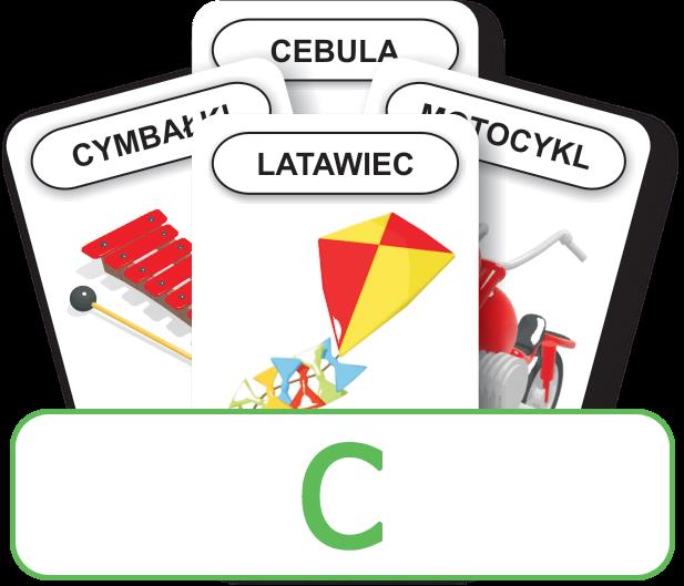 Część VII - głoska C NAGŁOS: cebula, cymbałki, cytryna, cenaŚRÓDGŁOS: klocki, plecak, motocykl, owca, owoceWYGŁOS: widelec, latawiec, plecak, piec, - 2 x Piotruś