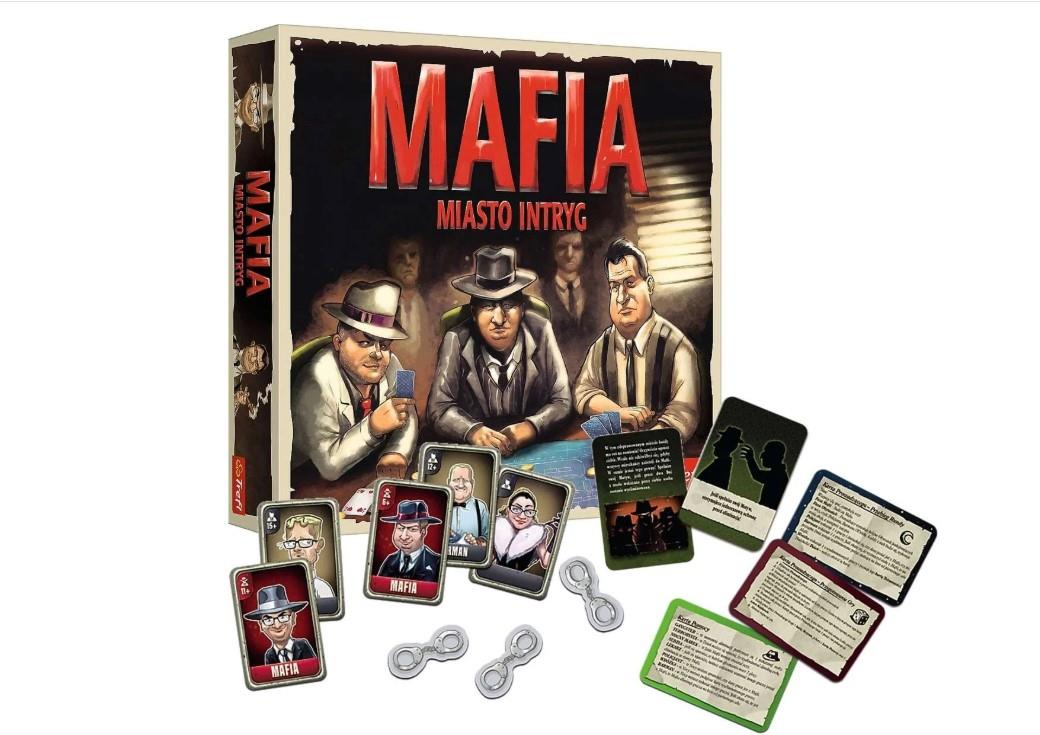 Trefl, Mafia ? Miasto Intryg, Towarzyska gra dla dorosłych i dzieci od 9. roku życiaMafia - Miasto intryg to klasyczna, znana na całym świecie gra towarzyska, wzbogacona o karty Motywów, które pozwolą Wam już na samym początku rozgrywki stworzyć sieć intryg i wzajemnych podejrzeń! Celem graczy jest wyeliminowanie wszystkich członków przeciwnej drużyny. Uważajcie, bo rozgrywka jest pełna sekretnych tożsamości, blefu, manipulacji i łatwo dać się zwieść!