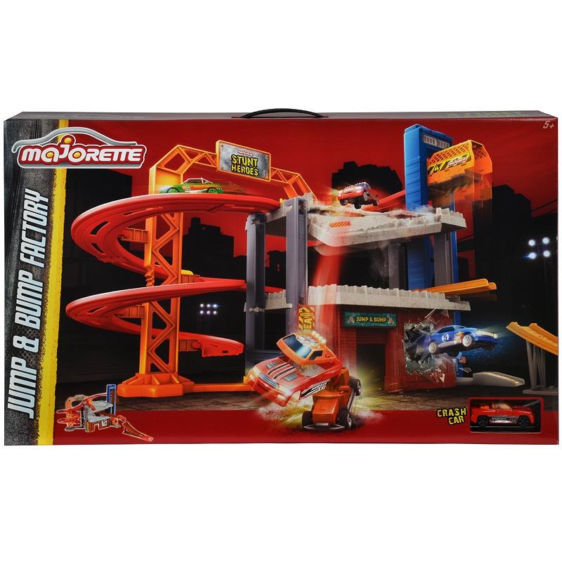 Ten wyczynowy zestaw Majorette to marzenie każdego młodego kaskadera. Duży zestaw z parkingiem, automatyczną windą, wieloma rampami oraz miejscami do lądowania samochodzików odkrywa całkiem nowe formy zabawy. Widowiskowe skoki, triki i ewolucje mogą być wykonywane na różnych poziomach. Zapadnia i inne przeszkody, pozwalają wysłać samochód w powietrze na mnóstwo różnych sposobów. Zestaw zawiera auto kaskaderskie. Nawet wypadek podczas wykonywania ewolucji nie sprawi mu problemu. Przy zderzeniu samochodzik rozpada się na trzy części, łatwe do ponownego złożenia. Wyrzutnie gwarantują, że samochód będzie miał właściwy rozpęd, by wstrzelić się na kolejną rampę lub poziom. Nawet najostrożniejsi kierowcy mogą stać się nieustraszonymi wojownikami dzięki temu zestawowi.