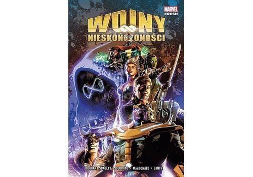 Kamienie Nieskończoności trafiły na Ziemię, a wraz z nimi nadeszła wojna. Doktor Strange, Kapitan Marvel, Loki, Strażnicy Galaktyki i inni bohaterowie ruszają do walki o klejnoty, których prawdziwej mocy i wpływu na wszechświat nikt do końca nie pojmuje. Niespodziewanie na ich drodze staje potężna wojowniczka, zwana Requiem, której tożsamość zaskoczy wszystkich. Stawką w tej wojnie jest sama rzeczywistość. Czy bohaterowie zdołają ją ocalić, czy też odmieni się ona na zawsze? Oto drugi album z nowej linii wydawniczej „Marvel Fresh”, która zastąpi „Marvel Now! 2.0” i w której będą się odtąd ukazywały najnowsze komiksy z wydawnictwa Marvel. Albumy „Wojny nieskończoności: Odliczanie” oraz „Wojny nieskończoności” łączą obie te linie wydawnicze – zamykają wątki ze „Strażników Galaktyki” (Marvel NOW! 2.0), a jednocześnie przygotowują uniwersum Marvela i jego bohaterów na kolejne przygody, które zobaczymy już w „Marvel Fresh”. Scenariusz „Wojen nieskończoności” napisał Gerry Duggan, autor znany z serii „Deadpool” i „Strażnicy Galaktyki”. Rysunki stworzyli Mark Bagley („Ultimate Spider-Man”), Mike Deodato Jr. („Grzech pierworodny”, „Niezwyciężony Iron Man”), Andy MacDonald oraz Cory Smith. Album zawiera zeszyty: „Infinity Wars Prime” 1, „Infinity Wars” 1–6, „Infinity Wars: Fallen Guardian” 1, „Infinity Wars: Infinity” 1 oraz „Thanos Legacy” 1.