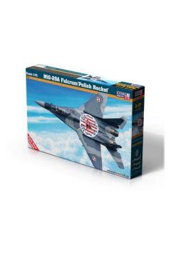 Model do sklejania: MIG-29 M 23 RD AFB 1:72 MiG-29 (NATO Fulcrum) ? rosyjski współczesny myśliwiec frontowy. Samolot odrzutowy MiG-29 zaprojektowano w 1972 roku w celu wymiany MiG-ów-21 i MiG-ów-23 na nowocześniejsze. Samolot miał być tzw. lekkim myśliwcem frontowym, uzupełniającym ciężki myśliwiec przewagi powietrznej Su-27. W konstrukcji skoncentrowano się na osiągnięciu dobrych parametrów lotnych i manewrowych uzyskanych drogą dopracowania koncepcji aerodynamicznej. Pierwszy prototyp wzniósł się w powietrze 6 października 1977 roku, a pierwsze seryjne samoloty MiG-29 9.12 ( Fulcrum-A ) weszły do służby w 1984 roku. Służba w lotnictwie polskim: Od 1989 roku samolot używany jest przez Siły Powietrzne Rzeczypospolitej Polskiej. Pierwsza prezentacja samolotu myśliwskiego MiG-29 dla polskiej delegacji wojskowej pod przewodnictwem Szefa Techniki Lotniczej generała Mieczysława Sikorskiego, odbyła się w październiku 1985 roku na podmoskiewskim lotnisku Kubinka. Strona polska była początkowo zainteresowana zakupem 36 jednomiejscowych samolotów bojowych i 6 dwumiejscowych samolotów szkolno-bojowych, które miały być wprowadzone do wyposażenia dwóch pułków lotnictwa myśliwskiego Wojsk Obrony Powietrznej Kraju (1 plm OPK - Mińsk Mazowiecki, 1 Korpus OPK i 62 plm OPK - Poznań-Krzesiny, 3 Korpus OPK). Dopiero w 1987 roku Ministerstwo Obrony Narodowej złożyło zamówienie na pierwsze dziewięć samolotów bojowych MiG-29 i trzy samoloty szkolno-bojowe MiG-29UB. Następnie zamówiono pięć kolejnych egzemplarzy. W lutym 1989 roku na przeszkolenie do ZSRR wysłano sześćdziesiąt osób, mających w przyszłości zajmować się wykorzystaniem nowych myśliwców, w tym dwunastu wyselekcjonowanych pilotów. Szkolenie prowadzone we Frunze trwało trzy miesiące; było to pierwsze i ostatnie szkolenie polskich pilotów samolotów myśliwskich MiG-29 w ZSRR. Wyszkoleni zostali tam instruktorzy, którzy następnie sami przeszkalali kolejne grupy w kraju.