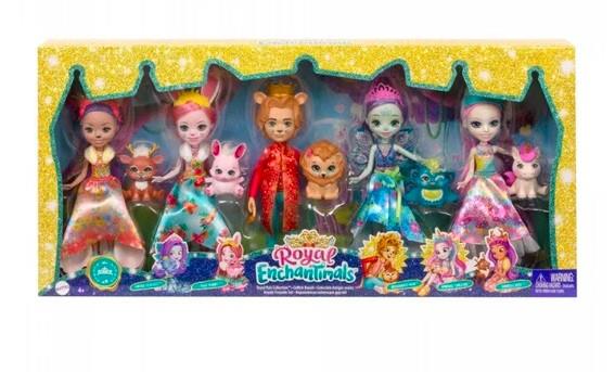 Wszystkim towarzyszą ich zwierzęcy przyjaciele. Lalki są ubrane po królewsku w długie suknie, korony i nie tylko. Przyjaciele są gotowi na każdą okazję, od uroczystego balu po przygody we wszystkich zakątkach królestwa. Ten zestaw to doskonały prezent zawierający gotową kolekcję Enchantimals.