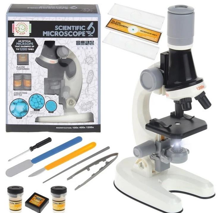 Edukacyjny zestaw dla młodego naukowca w skład którego wchodzi mikroskop z akcesoriami. Świetny sposób na wprowadzenie dziecka do świata nauki i przyrody.