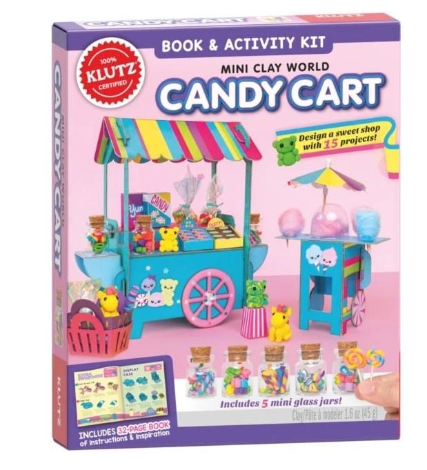 Make tiny little sweets and put them on display with Mini Clay World: Candy Cart by Klutz! The next kit in the popular Mini Clay World series. With all the materials included, children can make tiny little clay candies and display them in adorably small jars and packages.