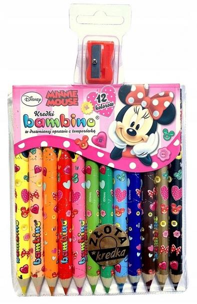 MINNIE MOUSE KREDKI BAMBINO + TEMPERÓWKA 12SZT