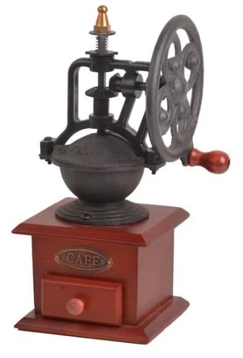 Młynek do mielenia kawy w stylu staro kontynentalnym. Żeliwna konstrukcja i drewniany spód sprawiają, że bezie się pięknie prezentował w każdej kuchni. Wykonany z wysokiej jakości materiałów. Urządzenie można łatwo rozkręcić i wyregulować. Istnieje możliwość ustawienia grubości mielenia ziaren.