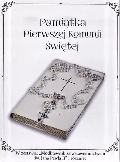 Pamiątka Pierwszej Komunii Świętej. W zestawie Modlitewnik za wstawiennictwem św. Jana Pawła II i różaniec.