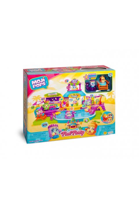Piękny błękitny basen ze zjeżdżalnią, strefa wypoczynku pod plażowym parasolem oraz scena stworzona do tańca - wszystkie elementy wykonane są z najwyższą starannością. W tym kreatywnym zestawie MojiPops prócz figurek znajduje się zastawiony smakowitymi drinkami bar, koło do pływania w postaci fioletowego flaminga, krzesełko ratownika, leżaki, parasol, malutki stolik oraz stanowisko DJa.