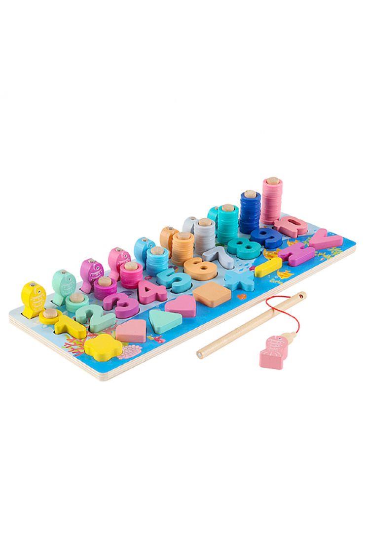 Drewniana zabawka edukacyjna z drewna dobrej jakości, posiada wymagane atesty. Różnorodność zabawy saprawi,że dziecko prędko się nią nie znudzi. Przyjemna kolorystyka, pastelowe odcienie. Wędka z magnesem do połowu drewnianych rybek doda rozmaitości.