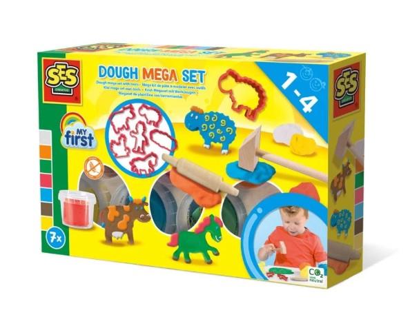 Dzięki temu mega zestawowi z narzędziami dzieci mogą godzinami bawić się różnymi nożykami, wałkiem do ciasta i młotkiem. Możesz stworzyć całą farmę, od farmera po krowy i owce.