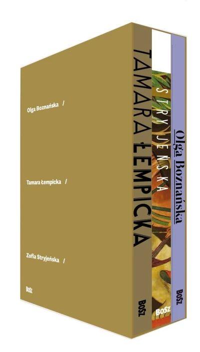 Zestaw trzech albumów poświęconych wybitnym polskim malarkom ? Oldze Boznańskiej, Tamarze Łempickiej i Zofii Stryjeńskiej w eleganckim etui. Olga Boznańska to najwybitniejsza polska malarka okresu Młodej Polski, tworząca w nurcie realizmu i impresjonizmu. Album stanowi wybór najlepszych prac Olgi Boznańskiej z całego okresu jej twórczości. Czytelnik znajdzie w nim ponad 50 znanych i mniej znanych reprodukcji, uzupełnionych wstępem poświęconym twórczości artystki. Tamara Łempicka to najbardziej znana polska artystka na świecie. Jej obrazy należą do najchętniej kupowanych i osiągają zawrotne ceny na aukcjach. Elegancka, błyskotliwa skandalistka w Paryżu zrobiła furorę swymi portretami o świetlistych, żywych kolorach z wyraźnymi cieniami i w niestandardowej stylizacji. Z tego okresu pochodzą Autoportret w zielonym bugatti, Portret Iry P. oraz akty Andromeda i Kobieta z gołębiem. Zofia Stryjeńska zwana ?księżniczką malarstwa polskiego . Jej przepełnione duchem słowiańskim prace zachwycają wielobarwnością i porywają żywiołowością. Są świadectwem niezwykłej wyobraźni, humoru i niepowtarzalnego talentu. Zaprezentowane w książce reprodukcje pochodzą ze zbiorów muzealnych oraz kolekcji prywatnych w Polsce i na świecie.