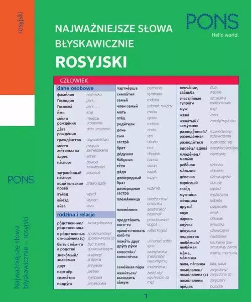 Najważniejsze słowa błyskawicznie - rosyjski. Praktyczna ściągawka do nauki i powtórek słownictwa rosyjskiego. Dwunastostronicowa, kolorowa składanka poręcznego formatu B5, którą możesz wpiąć do segregatora, zawiera podstawowe słownictwo rosyjskie, uporządkowane tematycznie.