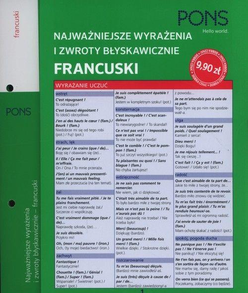 Idealna, wygodna w użyciu i będąca zawsze pod ręką "ściągawka" do nauki i powtórek w domu, szkole i na kursach językowych. Dwunastostronicowa, kolorowa składanka poręcznego formatu B5, którą można wpiąć do segregatora. Najważniejsze informacje językowe podane są w przystępnej i maksymalnie zwięzłej formie. Zwroty i wyrażenia o zbiór najczęściej stosowanych fraz oddzielonych na odpowiednie kategorie tematyczne.