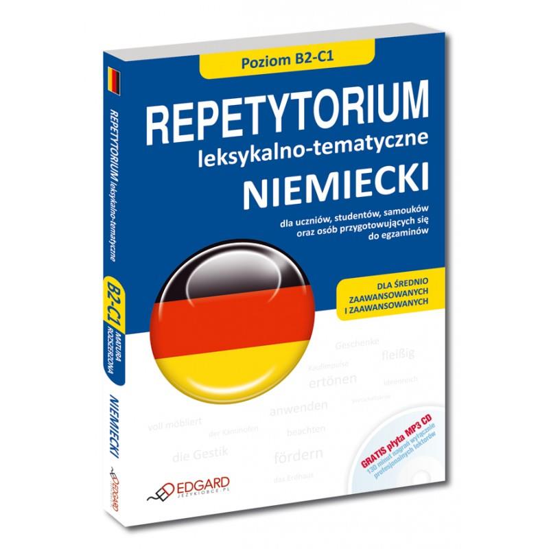 Zestaw (książka + płyta CD MP3) adresowany jest do uczniów, samouków oraz wszystkich, którzy chcą poszerzyć zasób niemieckiego słownictwa oraz przypomnieć sobie i skutecznie utrwalić znajomość zwrotów przydatnych w pracy i w życiu codziennym. Opracowany został również z myślą o uczniach szkół średnich, studentach i osobach przygotowujących się do egzaminów na poziomach B2-C1. Repetytorium może być pomocne nauczycielom, można je wykorzystać w trakcie pracy z uczniami podczas lekcji lub korepetycji.